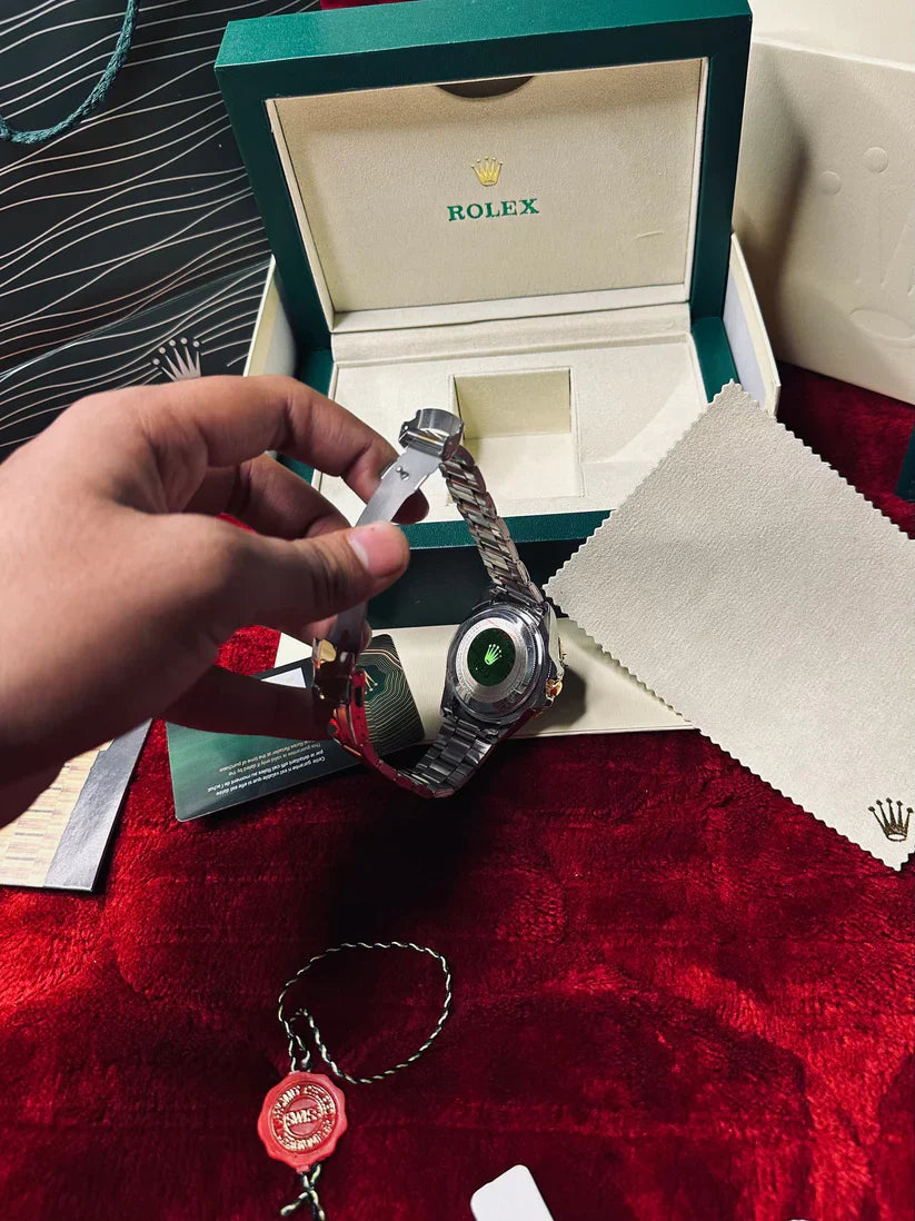 Oystersteel Case – Made from corrosion-resistant 904L stainless steel, ensuring durability and a sleek finish.